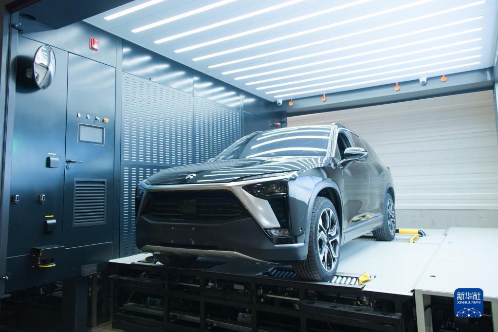 9月16日,在匈牙利比奧托爾巴吉,一輛蔚來(lái)汽車(chē)停放在換電站中。