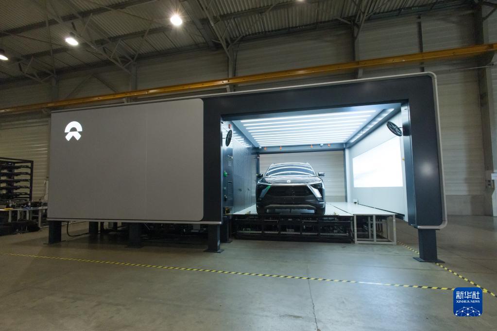 9月16日,在匈牙利比奧托爾巴吉,一輛蔚來(lái)汽車(chē)停放在換電站中。