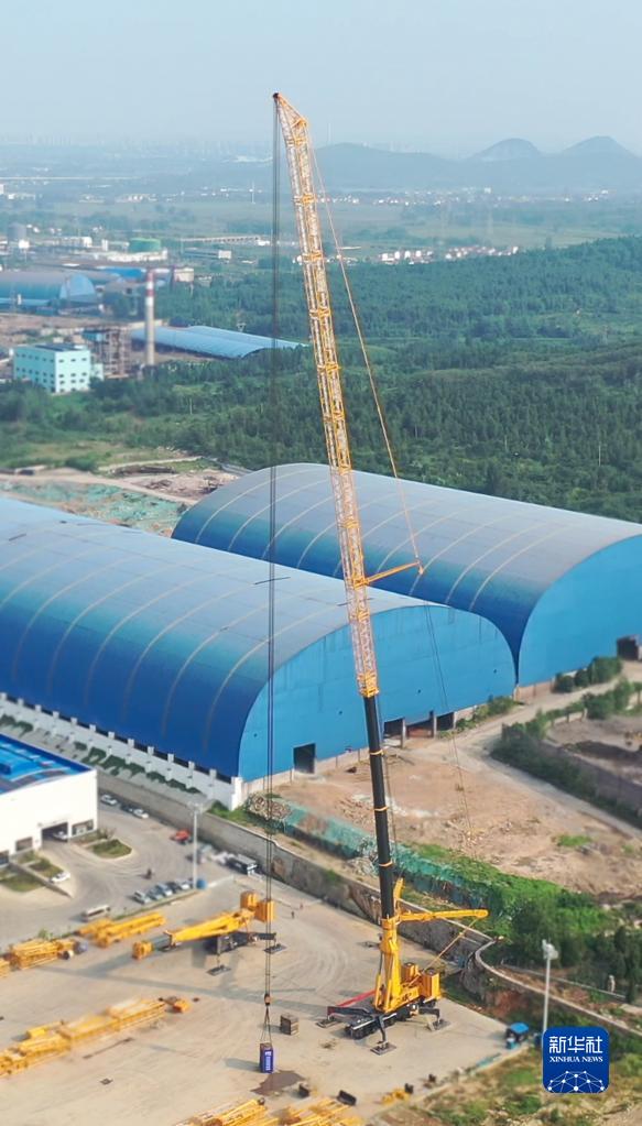 江蘇徐工集團工程機械股份有限公司自主研發(fā)的全球最大噸位全地面起重機XCA2600,正在起吊173噸重的砝碼(2022年9月2日攝,無(wú)人機照片)。
