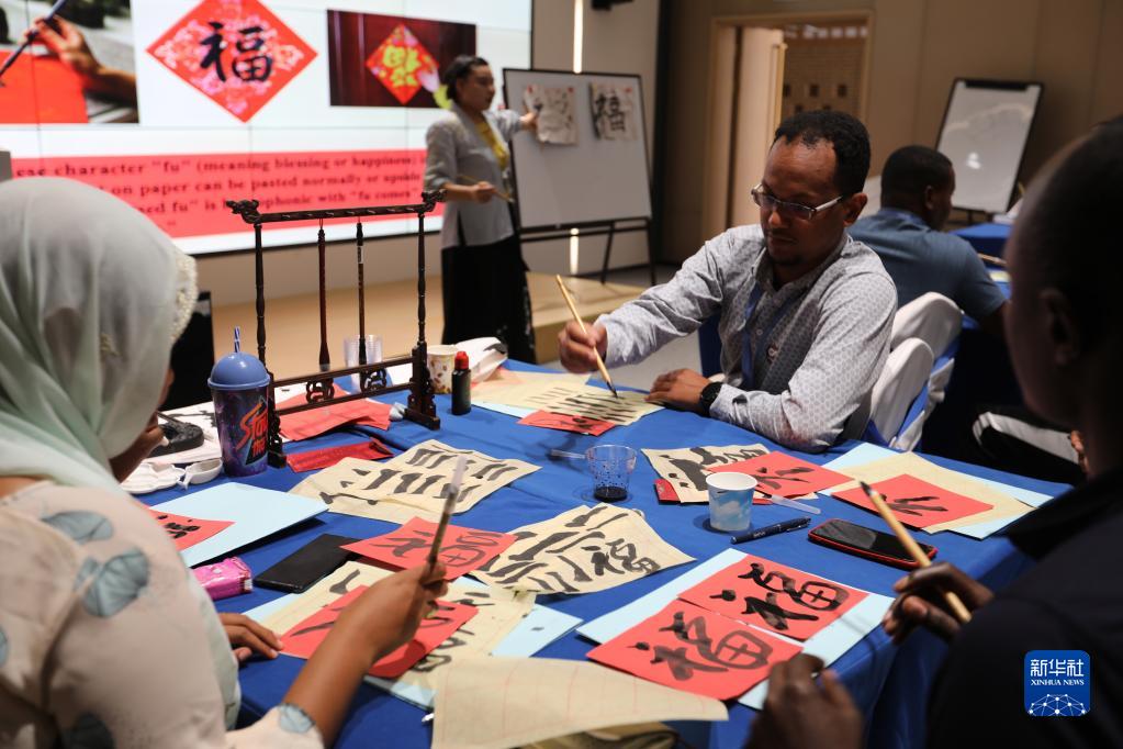 當日,在吉布提非洲青年創(chuàng )新創(chuàng )業(yè)中心,吉布提孔子學(xué)院老師為來(lái)自吉布提、埃賽俄比亞、肯尼亞、烏干達的非洲創(chuàng )業(yè)青年上了一堂生動(dòng)的中國文化課。風(fēng)俗、書(shū)法、剪紙等中國文化引起了學(xué)員們的廣泛興趣。