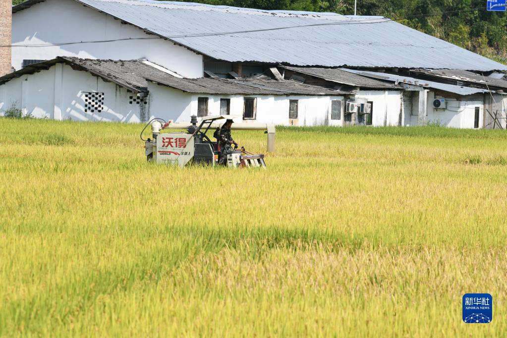 9月18日,福州市閩清縣省璜鎮山邊村農民在稻田里收割水稻。
