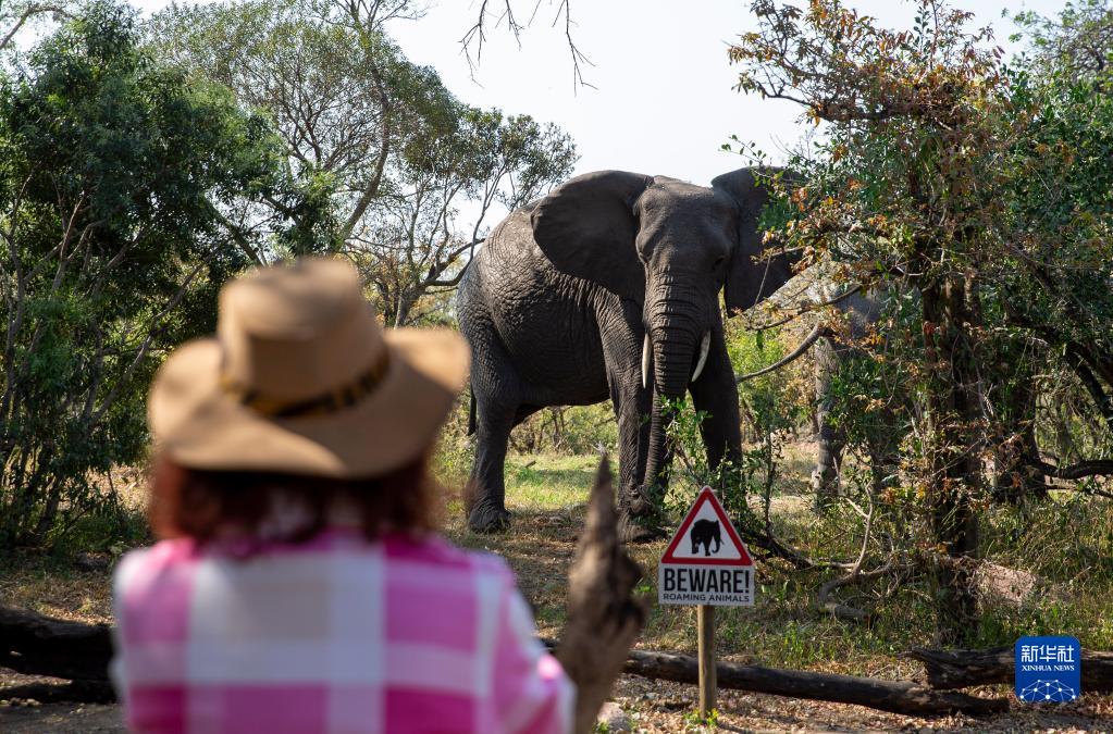 9月17日,在南非克魯格國家公園,大象走近一處游客休息點(diǎn)。