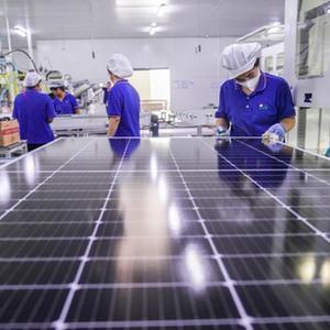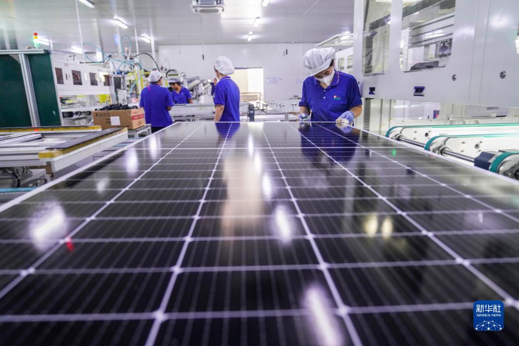 9月17日,山東省東營(yíng)經(jīng)濟技術(shù)開(kāi)發(fā)區潤馬光能科技有限公司工人在生產(chǎn)太陽(yáng)能電池板。