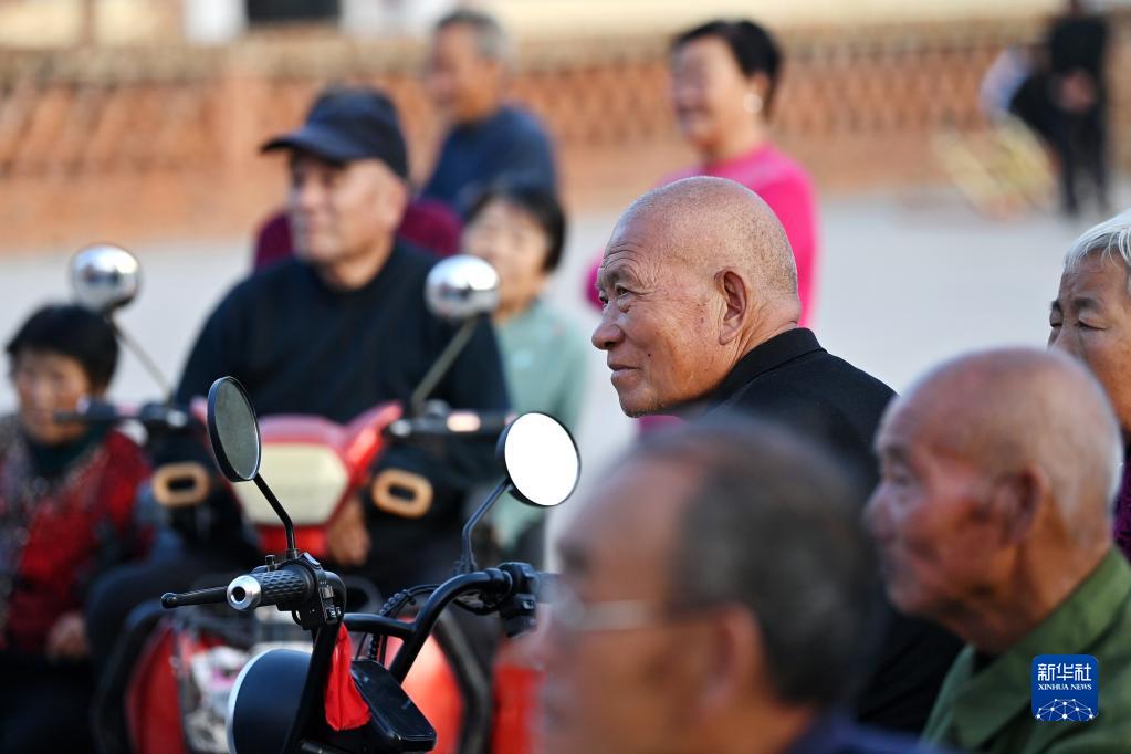 陵川縣楊村鎮泉頭村村民在觀(guān)看盲人曲藝宣傳隊演出(9月14日攝)。