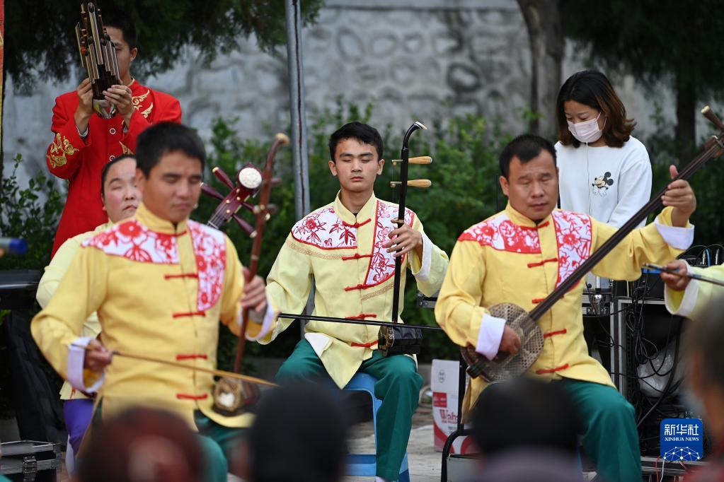 陵川縣盲人曲藝宣傳隊在陵川縣楊村鎮北山村演出(9月14日攝)。