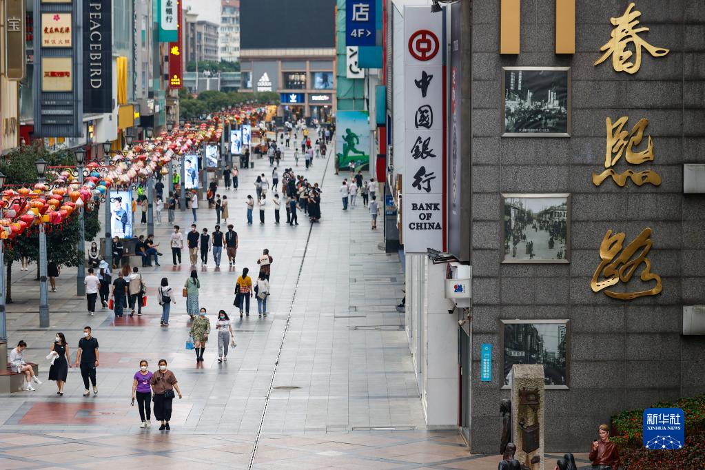 9月19日,人們在成都春熙路逛街。