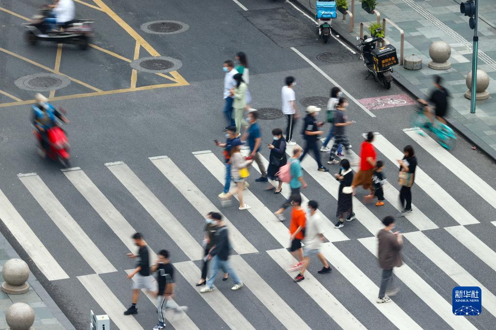 9月19日,人們在成都遠洋太古里附近的北紗帽街出行。