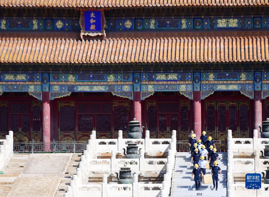 9月19日,消防人員在故宮太和殿前進(jìn)行消防演練。