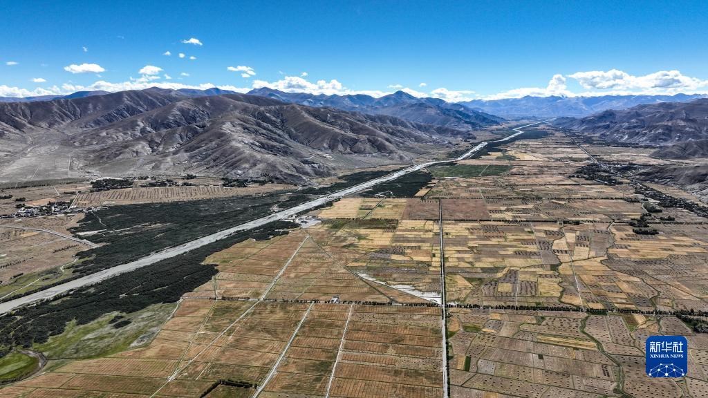 西藏日喀則江孜段富饒的農田(9月19日攝,無(wú)人機照片)。