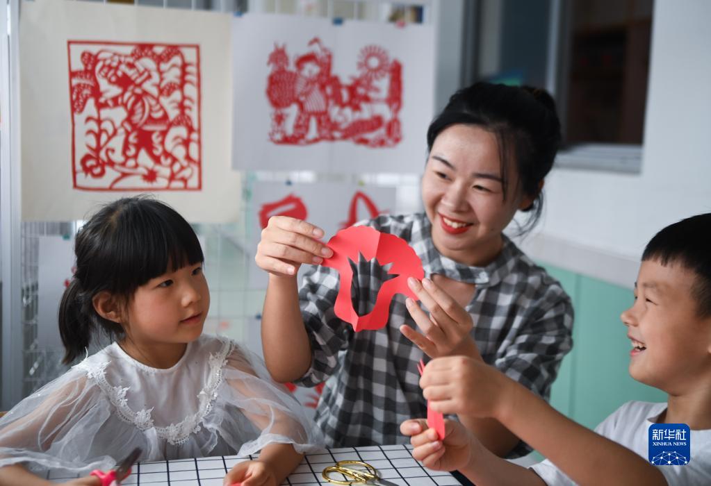 當日,浙江省湖州市長(cháng)興縣李家巷鎮中心幼兒園舉辦以中國農民豐收節為主題的校園剪紙活動(dòng),現場(chǎng)展示了老師們創(chuàng )作的豐收主題剪紙作品,同時(shí)老師還指導孩子們剪出稻穗、蘿卜、青菜等造型的剪紙作品,用這樣的方式迎接即將到來(lái)的中國農民豐收節。