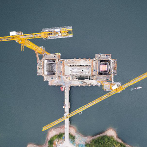 當日,官(莊)新(化)高速全線(xiàn)重點(diǎn)控制性工程馬路口資水特大橋主墩封頂,即將進(jìn)入橋梁上構施工階段,為早日通車(chē)運行奠定了基礎。馬路口資水特大橋位于湖南省益陽(yáng)市安化縣柘溪水庫內,全長(cháng)1187米,主跨500米,其中水中主塔高202.4米。