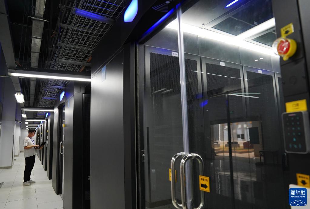 9月20日,在位于南昌經(jīng)濟技術(shù)開(kāi)發(fā)區的中國聯(lián)通智·云數據中心,工作人員檢查服務(wù)器運行情況。