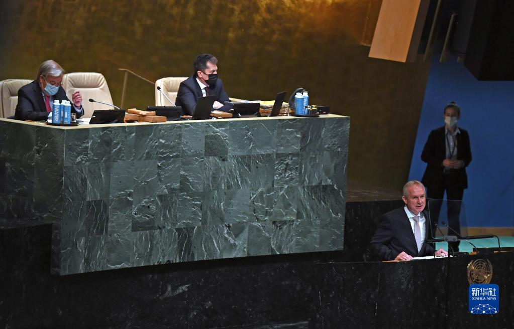 9月20日,在位于紐約的聯(lián)合國總部,第77屆聯(lián)合國大會(huì )主席克勒希(前)在第77屆聯(lián)合國大會(huì )一般性辯論開(kāi)幕式上致辭。