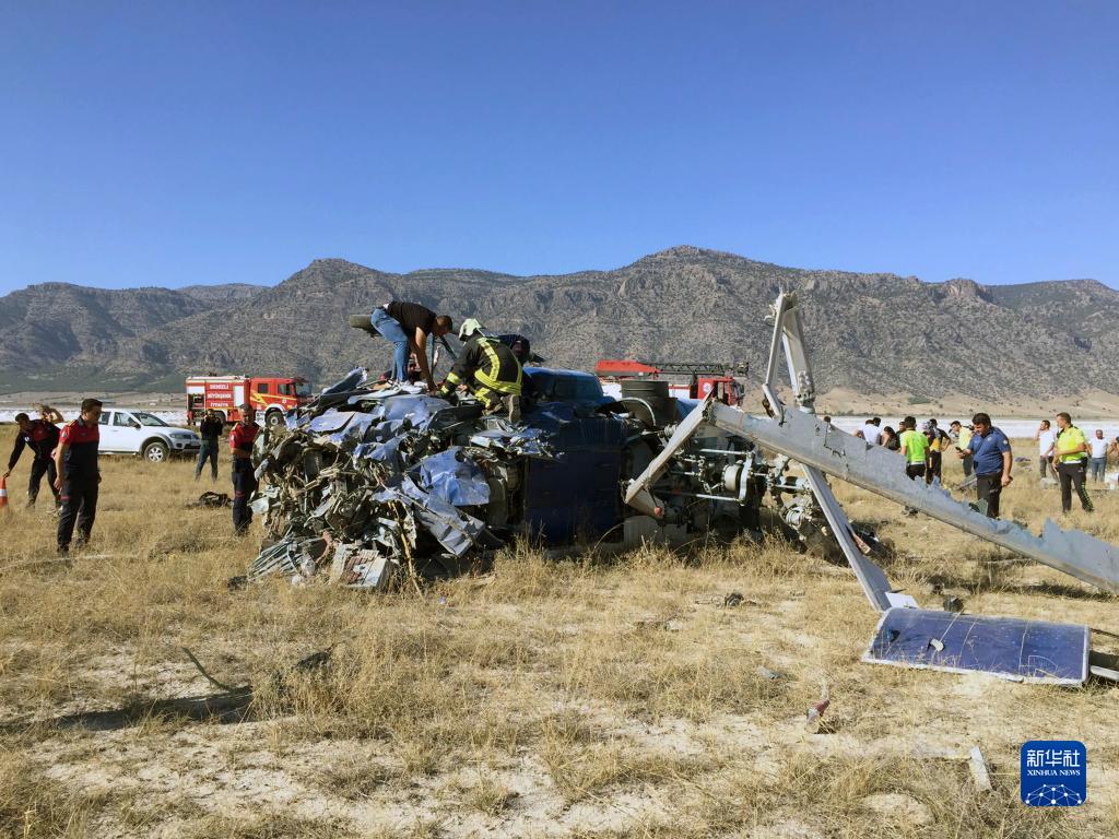 這是9月21日在土耳其代尼茲利省西南部拍攝的直升機墜毀現場(chǎng)。