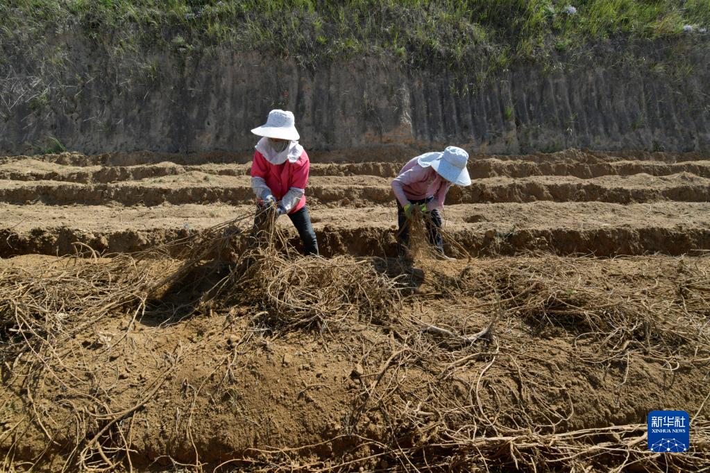 9月21日,農民在位于榆中縣貢井鎮的榆中宏鑫藥材專(zhuān)業(yè)合作社種植基地采收甘草。