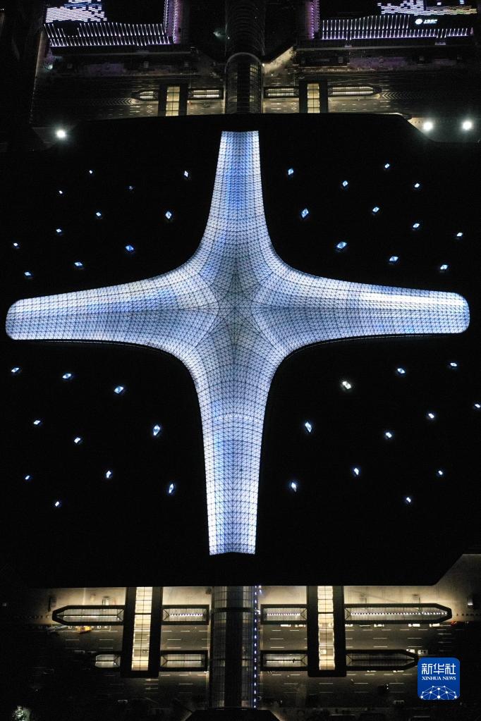 9月19日拍攝的杭州西站夜景(無(wú)人機照片)。