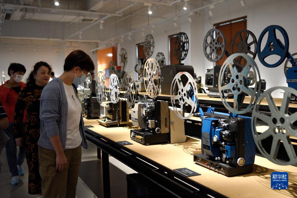 市民在西影電影藝術(shù)體驗中心世界電影放映機收藏博物館參觀(guān)。這里收藏有300余臺各式放映設備(9月21日攝)。