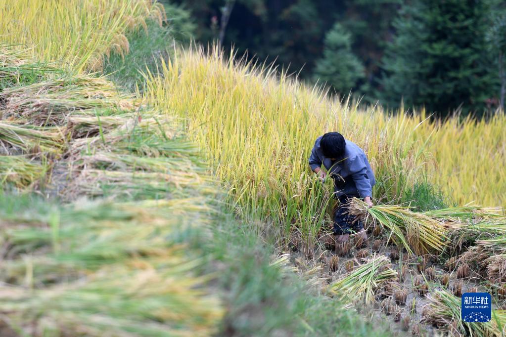 新華全媒+丨千年梯田收稻時(shí)