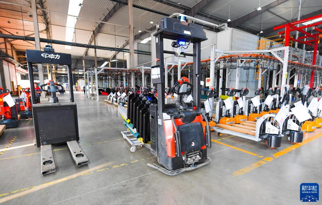 9月22日,在位于安吉縣的浙江中力機械股份有限公司,搬運機器人在運送零部件。