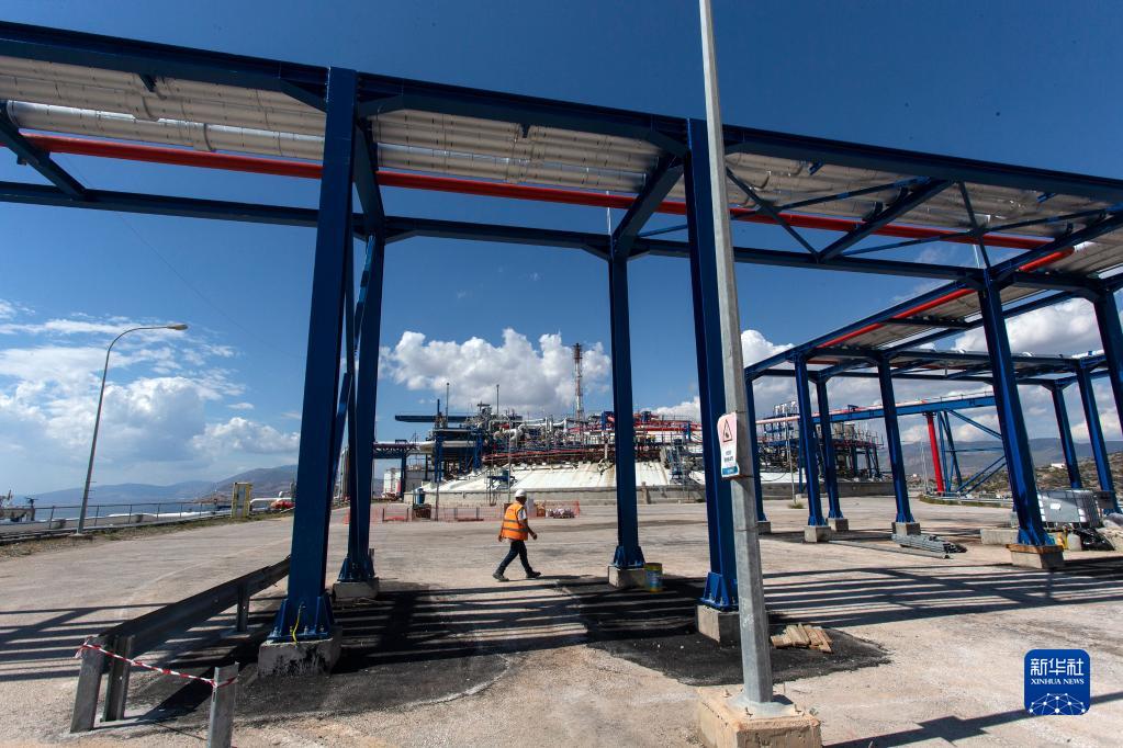 9月21日,一名工作人員在希臘雷維蘇薩液化天然氣接收站工作。