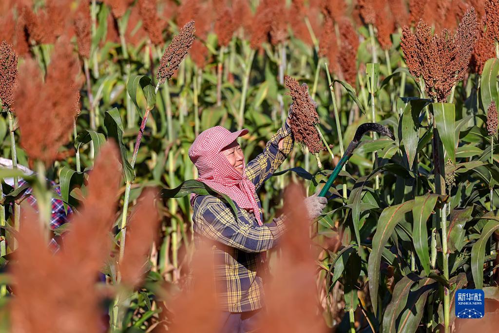 9月21日,浙江省杭州市淳安縣楓樹(shù)嶺鎮上江村村民在收割高粱。