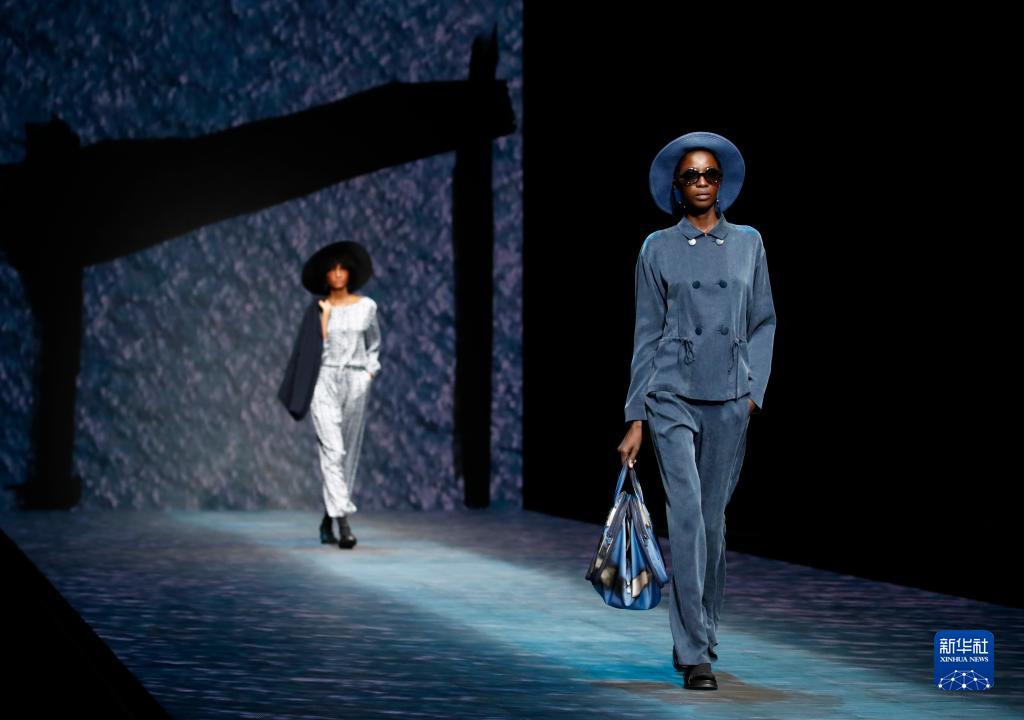 9月22日,模特在意大利米蘭女裝周上展示安普里奧·阿瑪尼品牌的2023春夏新款服裝。