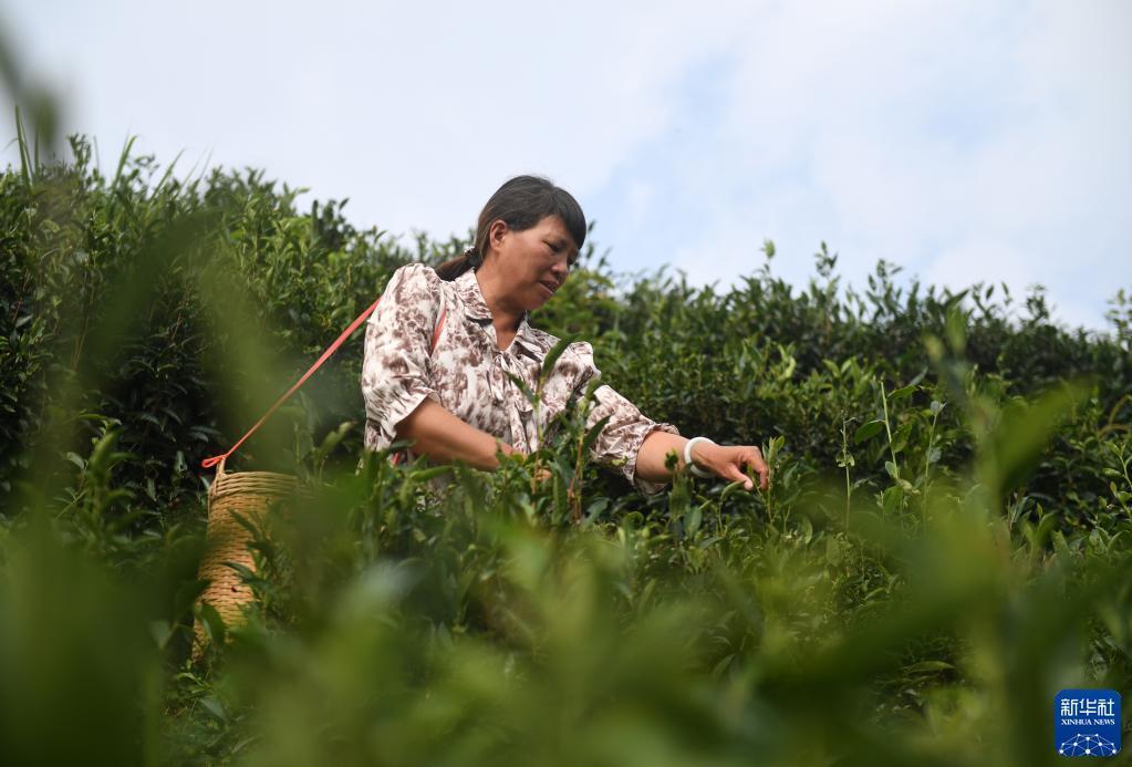 9月22日,廣西蒼梧縣六堡鎮山坪村村民在采茶。