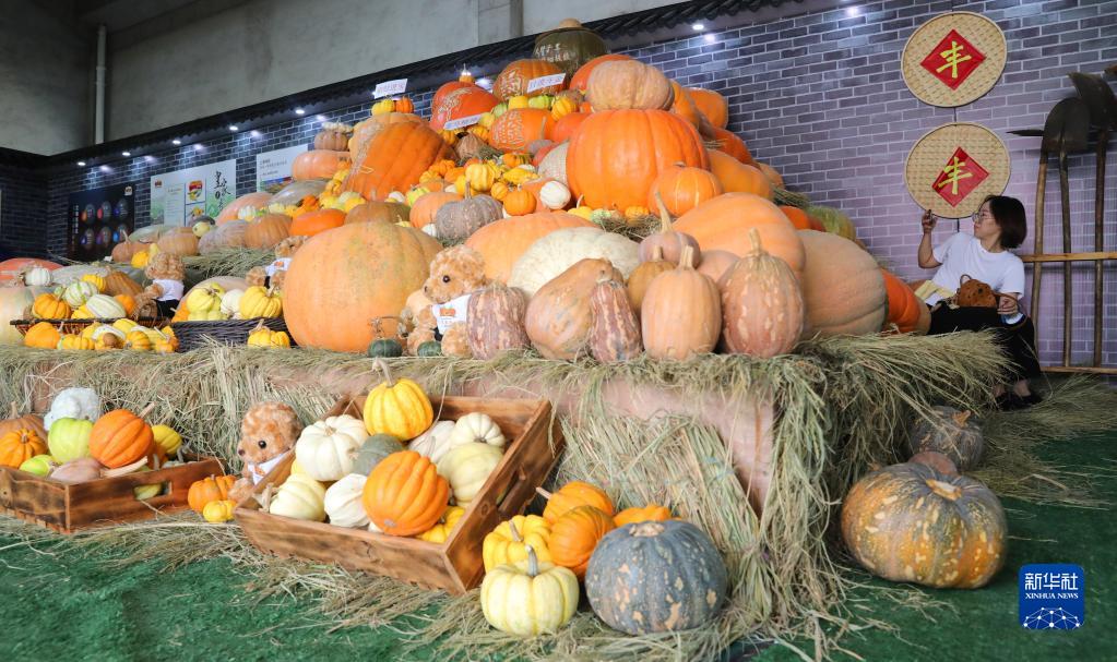 9月23日,在上海奉賢區莊行鎮浦秀村,參加豐收節活動(dòng)的市民用手機拍攝南瓜。