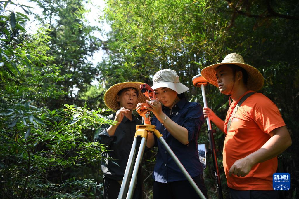 9月22日,在廣東韶關(guān)樂(lè )昌市張溪村的生態(tài)監測樣地,白拉曲珍(中)和師傅江建發(fā)(左)、同事伍國清在操作設備。