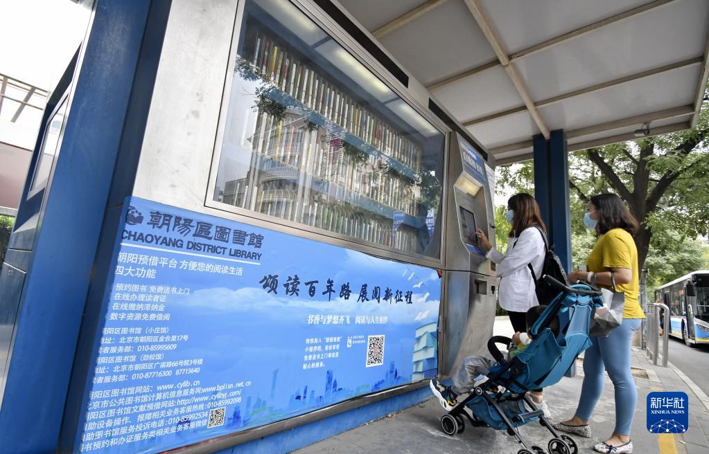 居民在北京市朝陽(yáng)區街頭自助圖書(shū)館借書(shū)(9月19日攝)。