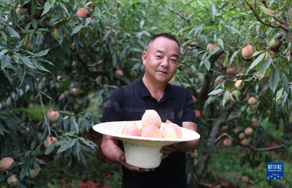 9月19日,在云南省巍山縣廟街鎮營(yíng)盤(pán)村,“70后”劉吉祥在采摘福桃。劉吉祥2013年開(kāi)始種植福桃,現在他的福桃基地已達150畝。