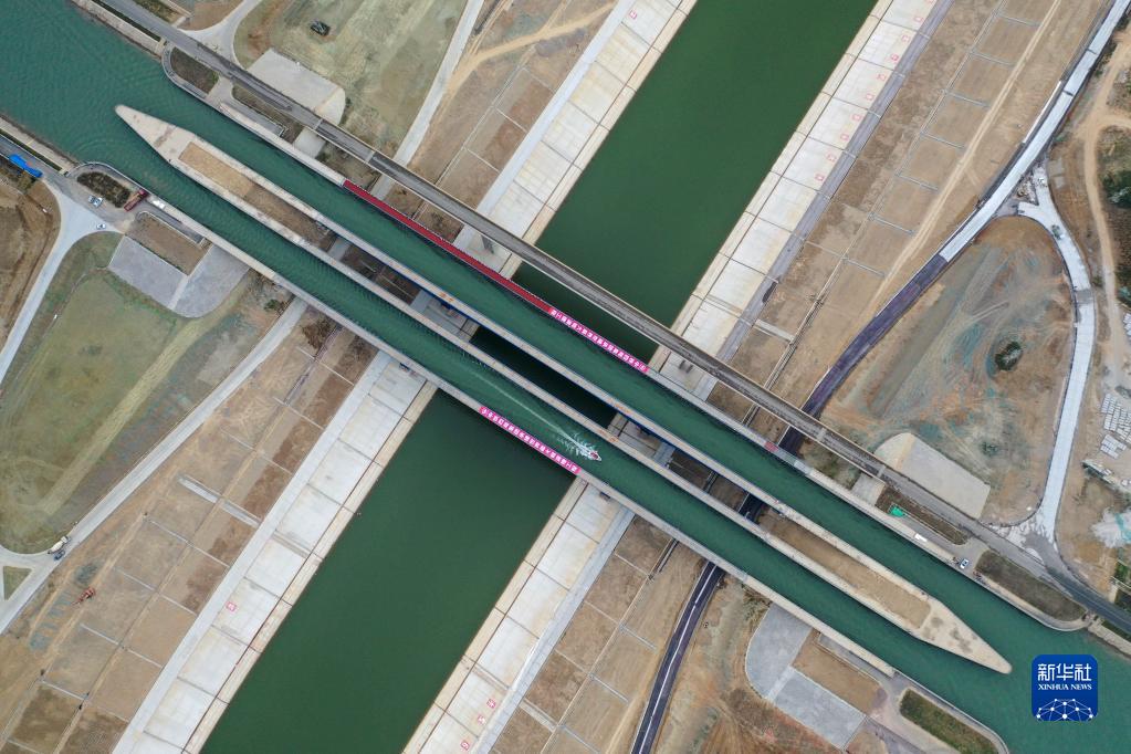 近日,由中鐵四局參建的引江濟淮淠河總干渠渡槽通航。從空中俯瞰,淠河總干渠從引江濟淮運河上凌空而過(guò),呈現出河上有河的“水上立交”景象。據了解,淠河總干渠比引江濟淮航道高出30多米,通過(guò)架設渡槽,淠河水從引江濟淮運河“跨過(guò)”,形成一座河上有河可通水行船的“水橋”。