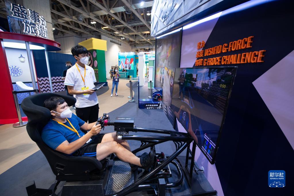 9月23日,觀(guān)眾在澳門(mén)國際旅游(產(chǎn)業(yè))博覽會(huì )澳門(mén)館體驗賽車(chē)。新華社記者 張金加 攝