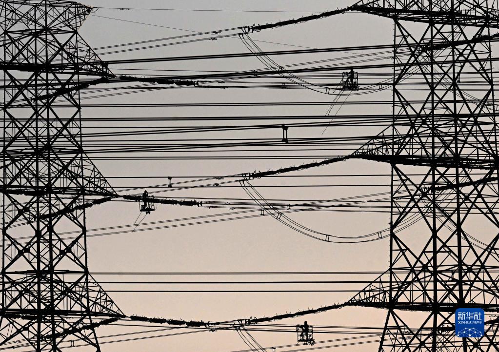 9月19日,工人在科威特杰赫拉省的高空電纜上進(jìn)行維護作業(yè)。
