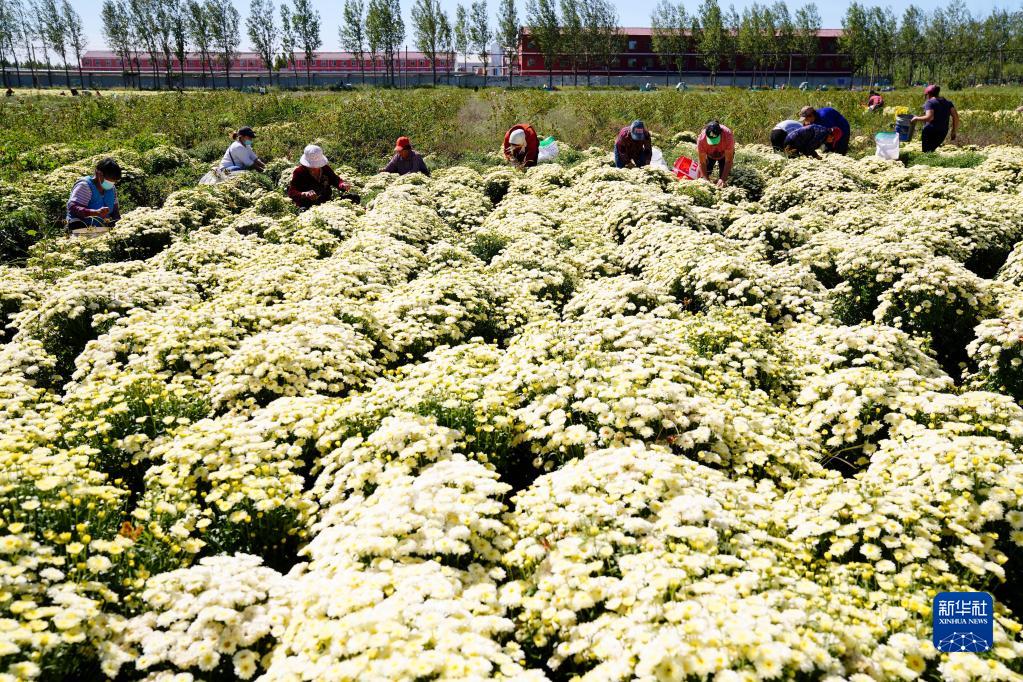 9月23日,在惠民縣姜樓鎮誠至農牧專(zhuān)業(yè)合作社,村民在采摘北京菊。