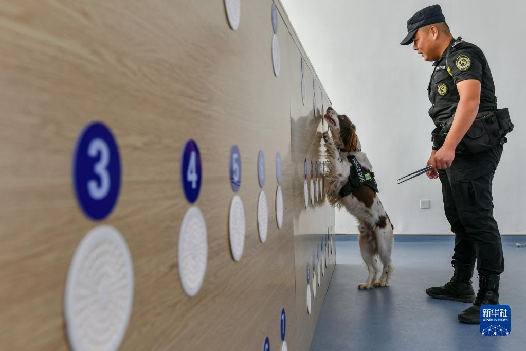 9月20日,搜爆犬“烏龍”在訓導員辛晨帶領(lǐng)下進(jìn)行氣味搜索訓練。