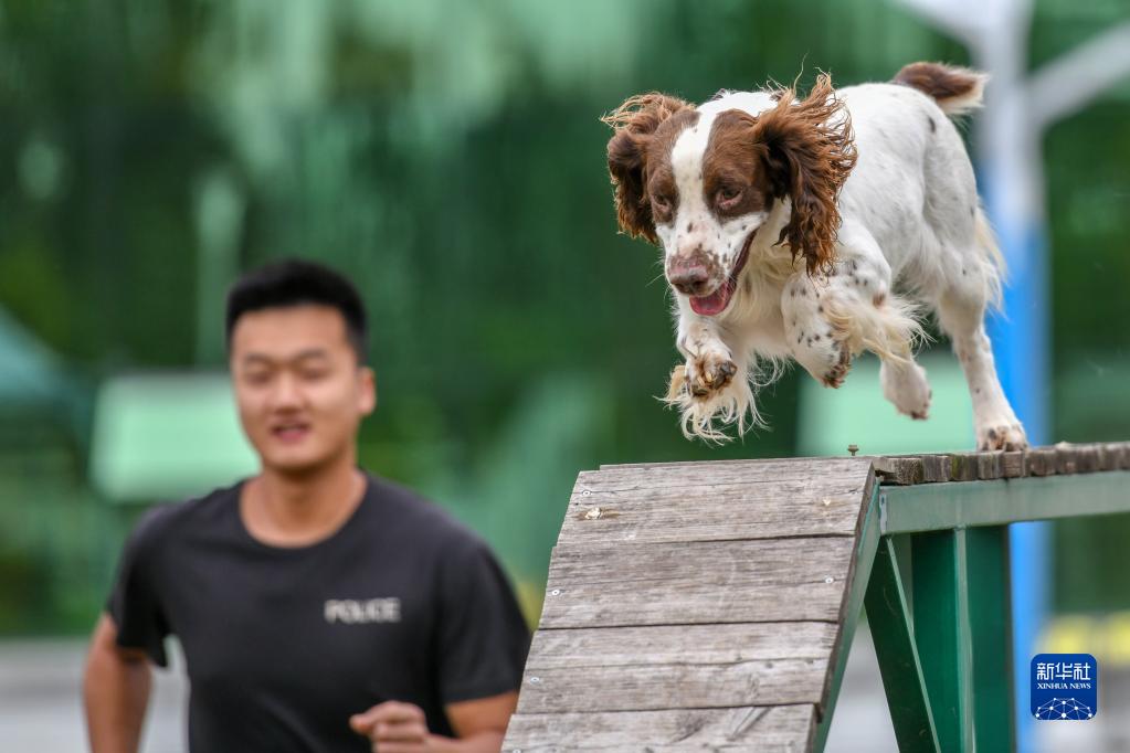 9月20日,搜索犬“饅頭”在進(jìn)行越障訓練。