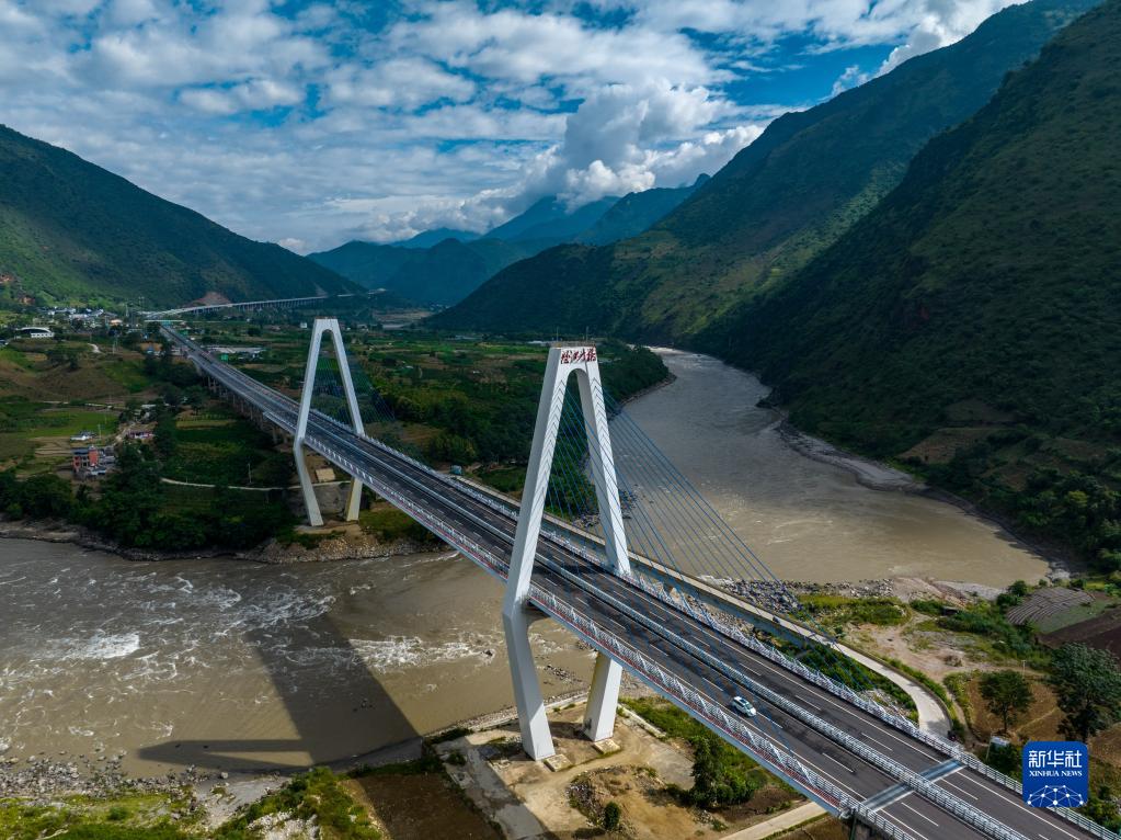 這是2022年9月15日拍攝的云南保(山)瀘(水)高速怒江大橋。該高速是怒江州的首條高速公路(無(wú)人機照片)。新華社記者 江文耀 攝