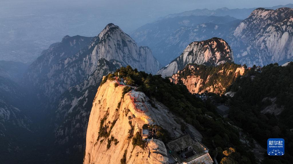 9月25日,夕陽(yáng)西下,雨后初霽的西岳華山,云霧縈繞,宛如仙境(無(wú)人機照片)。