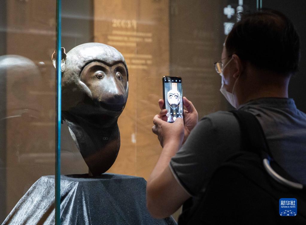 9月26日,觀(guān)眾在拍攝展出的猴首。