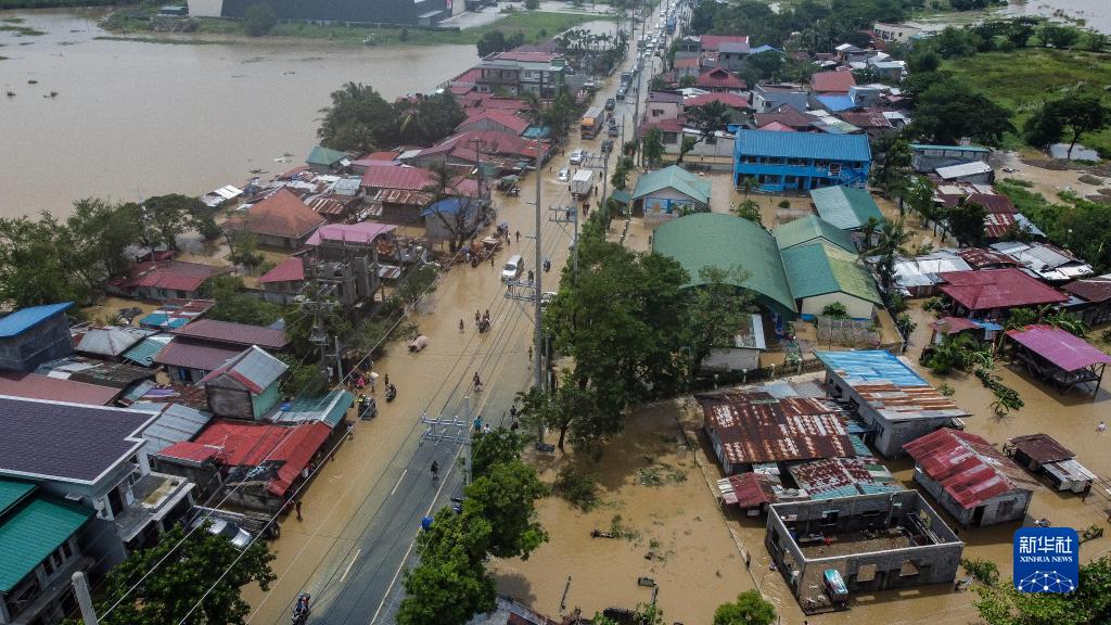 這是9月26日在菲律賓布拉干省航拍的遭洪水侵襲的區域。