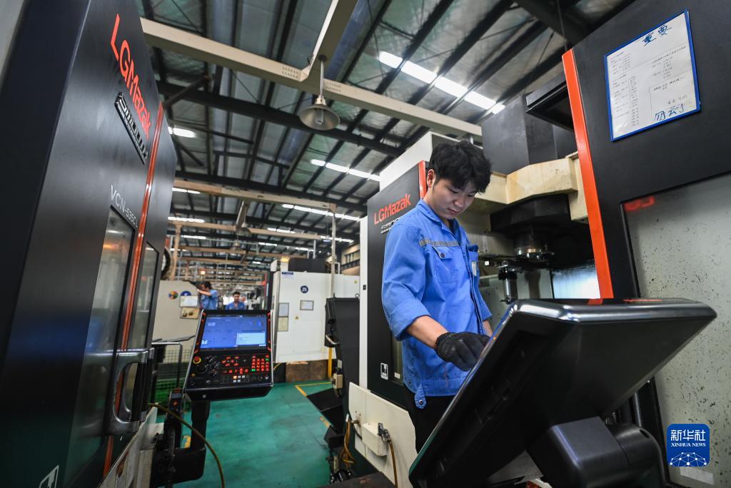 9月27日,在位于諸暨市店口鎮工業(yè)區的浙江萬(wàn)安科技股份有限公司數字化車(chē)間內,工人在查看數控設備運行情況。