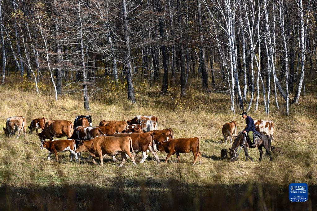 9月27日,牧民在扎蘭屯市柴河鎮放牧。