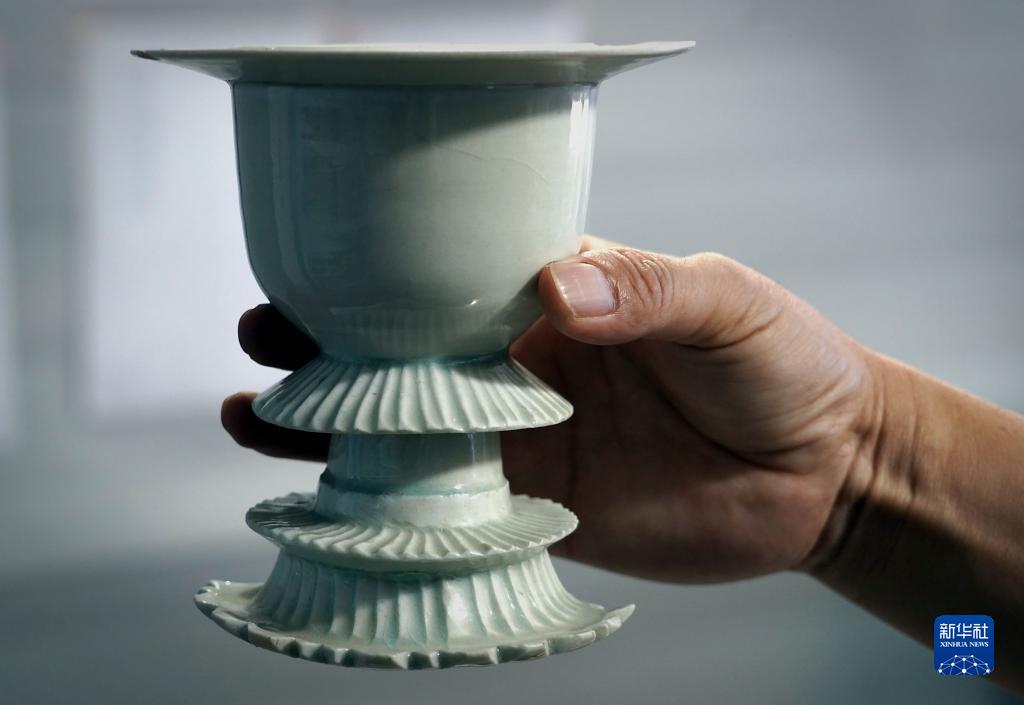 這是開(kāi)封北宋東京城州橋遺址出土的瓷器(9月21日攝)。