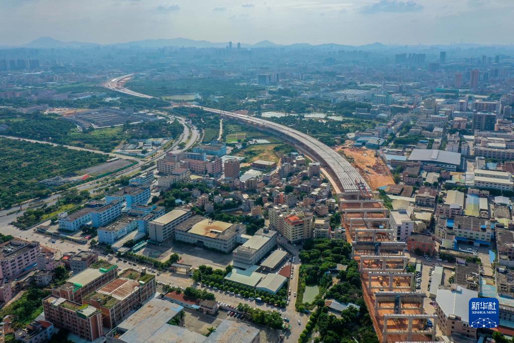 莞番高速貫穿東莞市十個(gè)鎮區,大量采用雙層橋設計有效節約建設用地(9月27日攝,無(wú)人機照片)。
