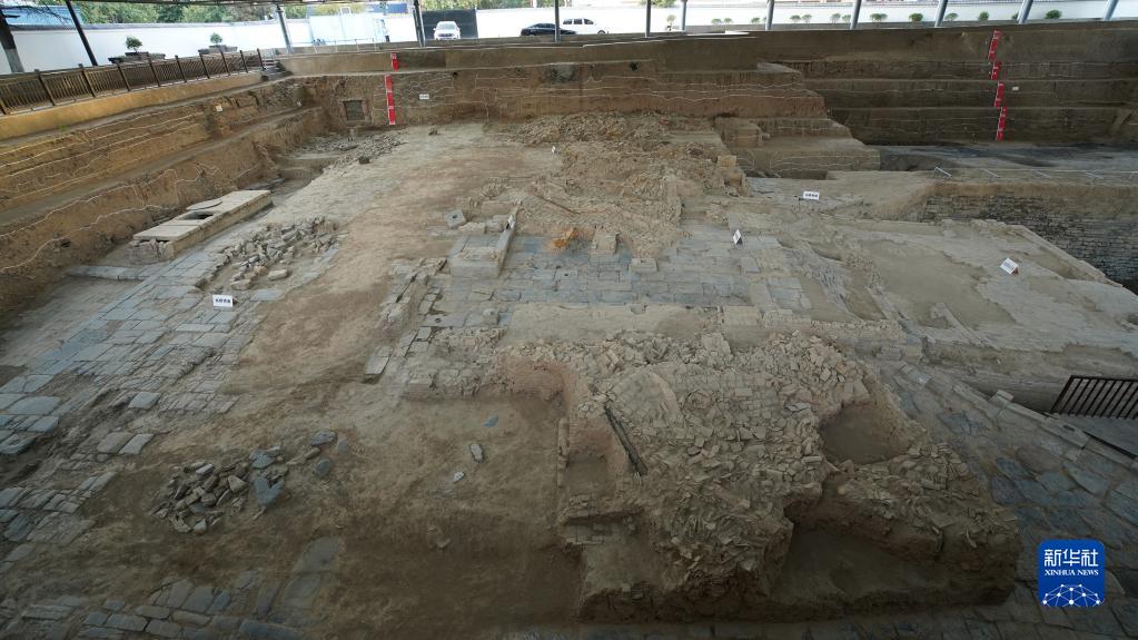 這是在河南開(kāi)封州橋與汴河遺址中發(fā)掘出來(lái)的明代州橋遺址全景(國家文物局供圖)。