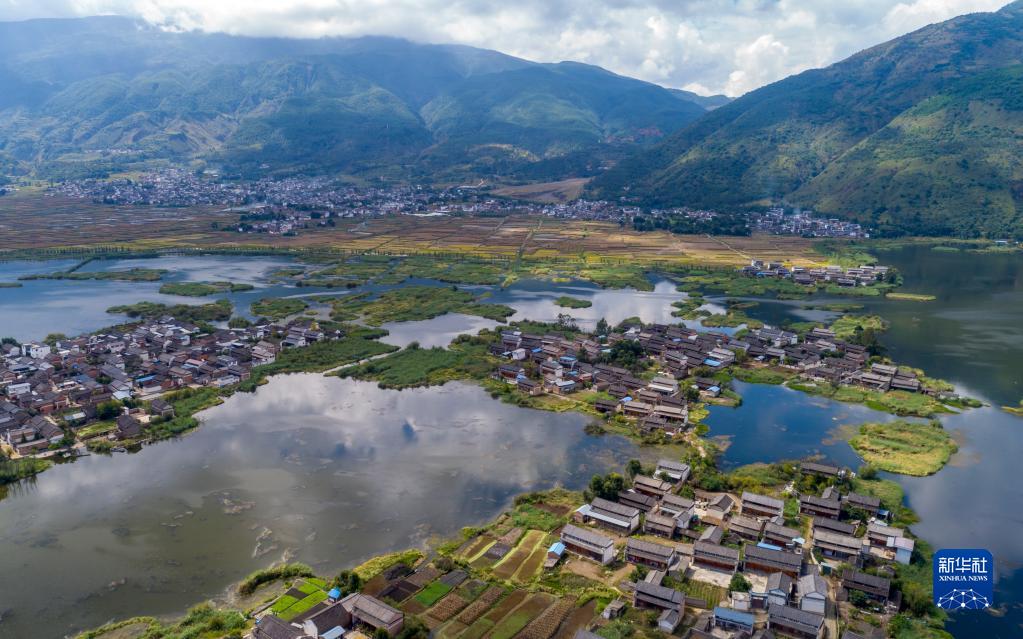 這是9月28日拍攝的洱源西湖一景(無(wú)人機照片)。