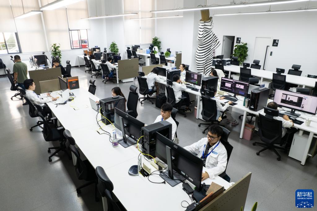9月29日,在位于常德科技創(chuàng )新創(chuàng )業(yè)孵化產(chǎn)業(yè)園的湖南聯(lián)科科技有限公司,人們在辦公區工作(無(wú)人機照片)。