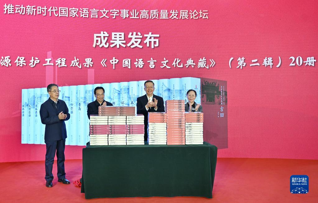當日,推動(dòng)新時(shí)代國家語(yǔ)言文字事業(yè)高質(zhì)量發(fā)展論壇在北京商務(wù)印書(shū)館舉行,論壇上發(fā)布了中國語(yǔ)言資源保護工程成果《中國語(yǔ)言文化典藏》第二輯20冊。