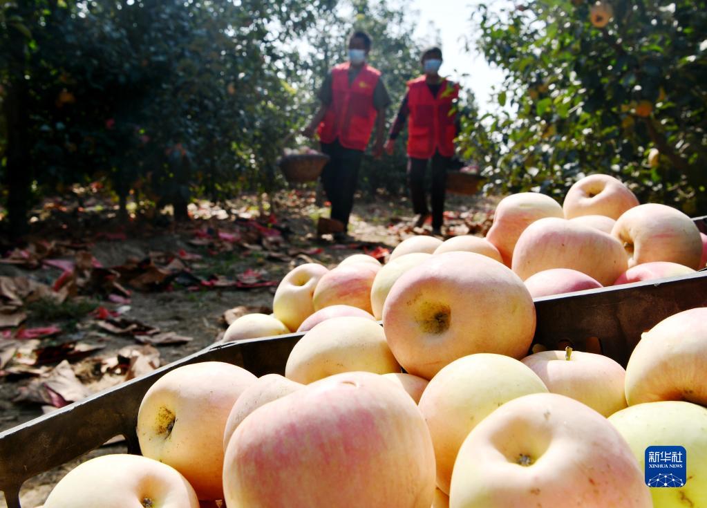 9月29日,果農在河北省石家莊市欒城區一種植專(zhuān)業(yè)合作社蘋(píng)果園采摘蘋(píng)果。